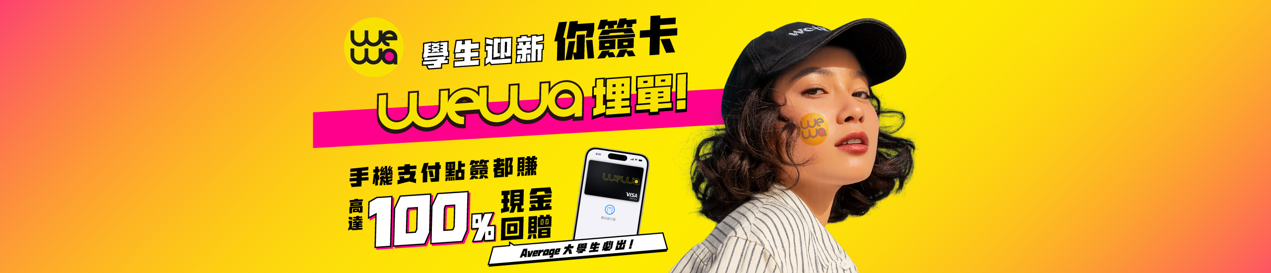 2025年10月20日或之前,成功申請WeWa Visa Signature信用卡可任揀以下迎新優惠。 2025年12月31日或之前,經WeWa信用卡網頁成功申請,更可享額外HK$100回贈(免簽賬)!