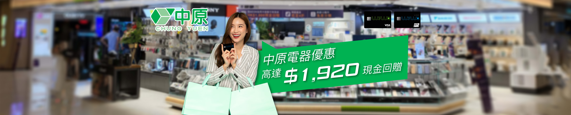即日起至2026年2月28日期間 (「推廣期」) ,WeWa信用卡客戶於中原電器分店或網店www.cyeshop.com可享以下簽賬優惠︰