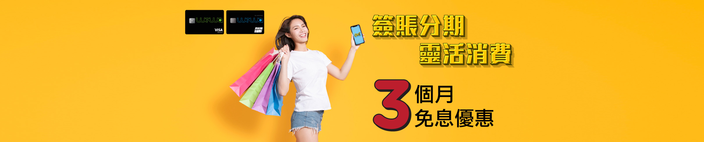 分期都有得玩住賺!憑WeWa信用卡簽賬,喺2026年4月30日或之前經OmyCard手機App申請6個月或以上簽賬分期,可額外享高達2%現金回贈,連同WeWa自選玩樂類別高達4%嘅現金回贈,合共可享高達6%回贈!畀你玩完再分期減輕壓力之餘仲有賺。