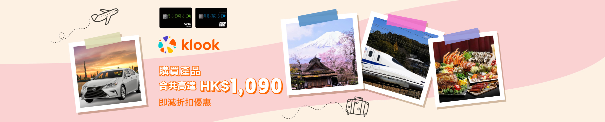 由2025年12月15日至2026年1月31日,以WeWa信用卡及優惠碼【WEWA2H200】於Klook網站或手機應用程式,單一簽賬滿HK$1,500或以上即減HK$200!