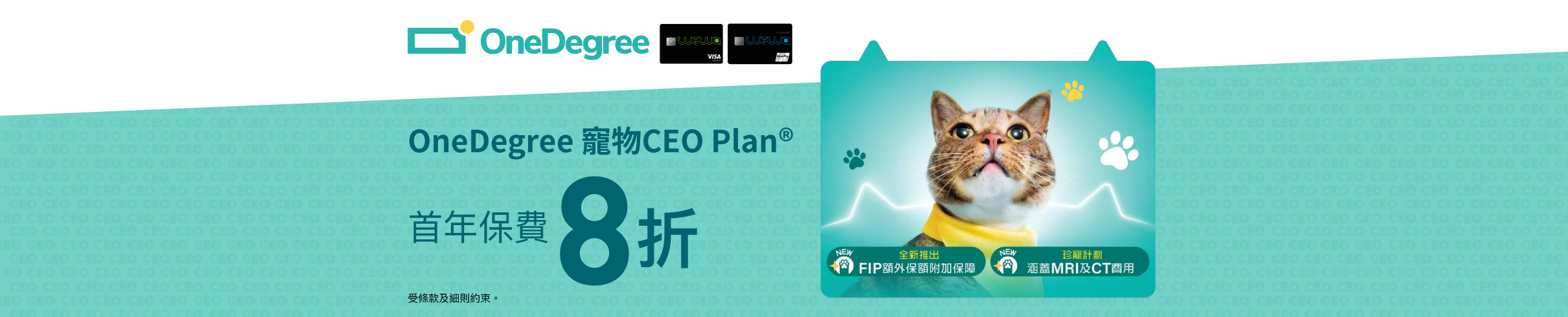 WeWa信用卡呈獻:OneDegree寵物CEO Plan®首年保費8折